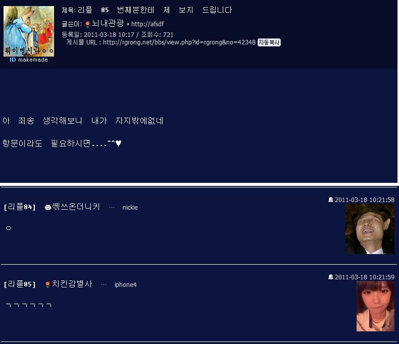 | 71 | ºñ°ø°³ ¼Õ´Ô ¡¦ 2011-03-23 00:06:22 | ||