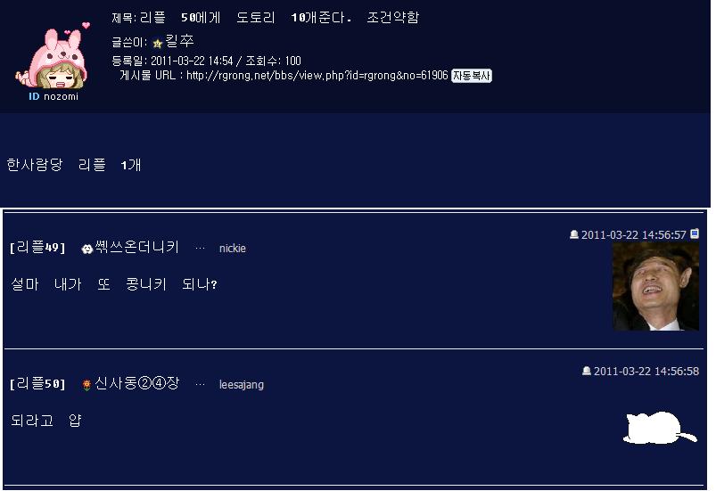 | 50 | ºñ°ø°³ ¼Õ´Ô ¡¦ 2011-03-22 22:22:40 | ||